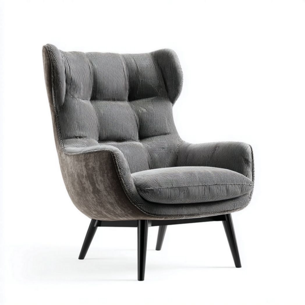 Fauteuil en tissu côtelé coloris gris à dossier haut enveloppant€125,30