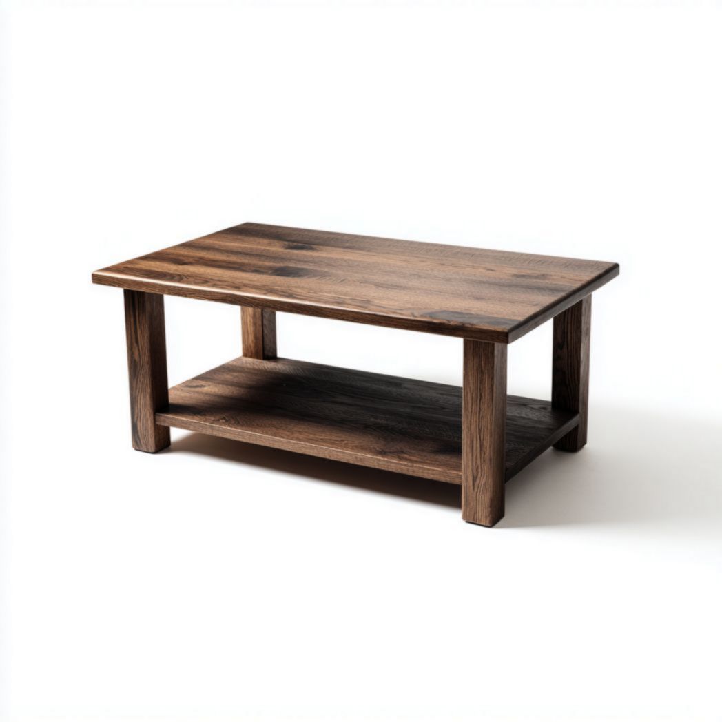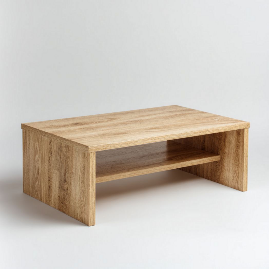 • Table basse rectangulaire à étagère ouverte coloris brun clair