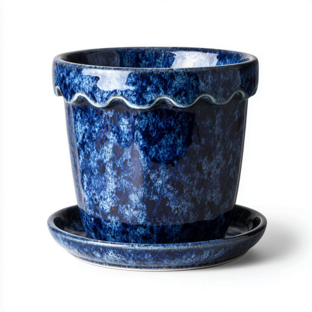 Couleur : Corps du cache-pot en bleu foncé avec effet d’émail bleu clair ; soucoupe en bleu foncé