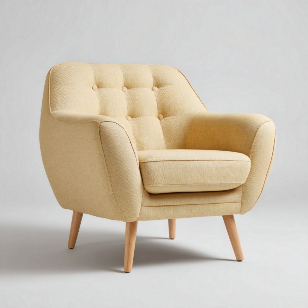 Couleur : fauteuil en coloris jaune, pieds en brun clair