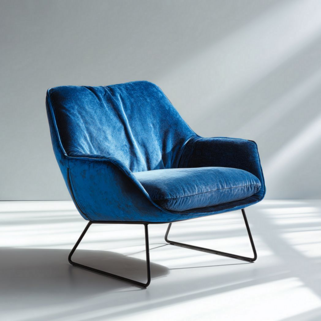 Matériaux : velours en fibres de polyester, mousse, structure en métal